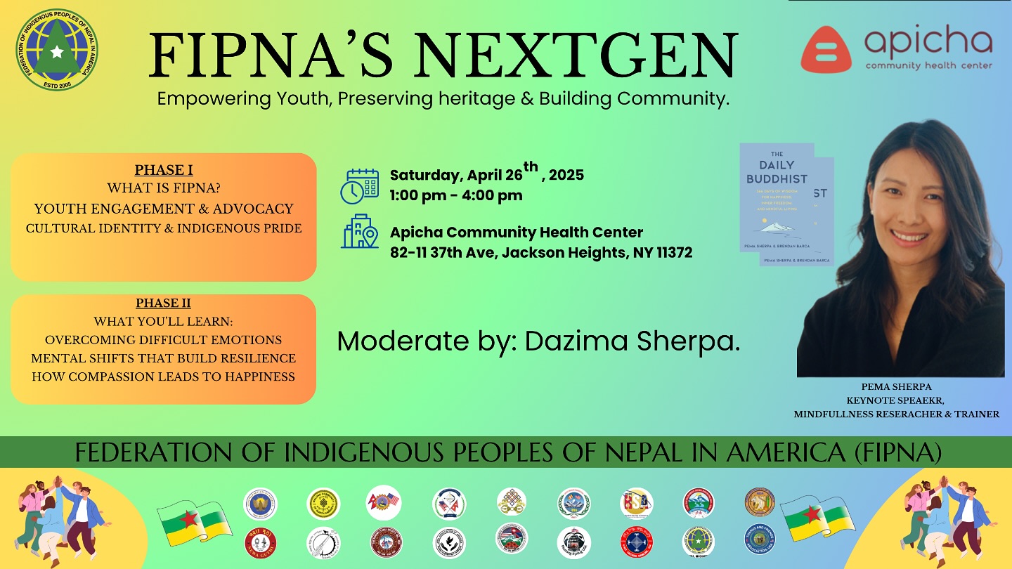 We are delighted to invite you to Federation of Indigenous Peoples of Nepal in America (FIPNA)’s Annual General Meeting (AGM) on January 18th, 2025, from 12:00 PM to 3:00 PM. This gathering provides a wonderful opportunity to reflect on the pas...